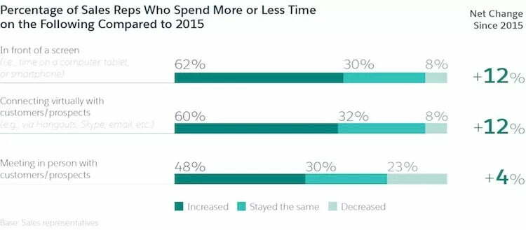In any case, video conferencing and different applications offer a chance to connect with customers one after another and a place that suits them. Almost 60% of sales reps state they invest more energy selling online than they did in 2015, as per the third release of Salesforce’s edition “State of Sales” study. In the meantime, 52% of sales reps state they invest a similar amount of energy or less meeting with customers face-to-face.