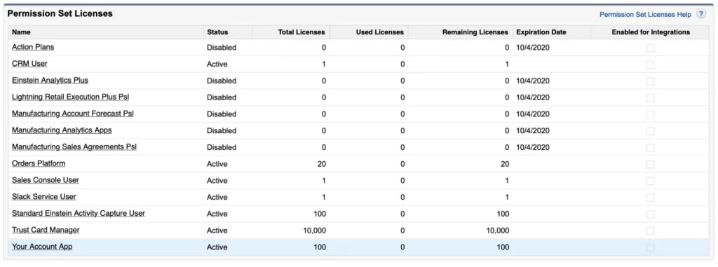 These licenses determine the level of accessible features for each user. Each user must have an assigned user license. User permissions for data access can be assigned through a profile and one or more permission sets. Within an organization, various standard user licenses are available, including: