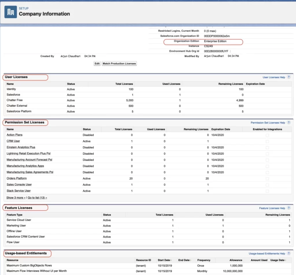 Salesforce user licenses play a vital role in determining the accessibility of features for users in the Salesforce application. Assigning a user license to each user is essential. You can track the details of all Salesforce licenses from the company information page, which comprises Organization Edition and User licenses as its major components. Now, let’s explore these licenses in detail.